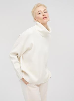 Grey turtleneck Sweater with three quarters sleeves with rhinestones Valentina Milano